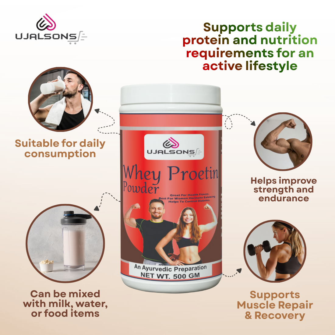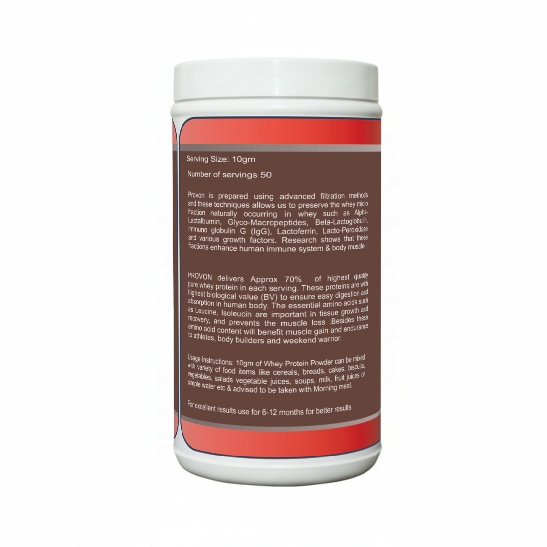 Usage Instructions: 10gm of Whey Protein Powder can be mixed with: