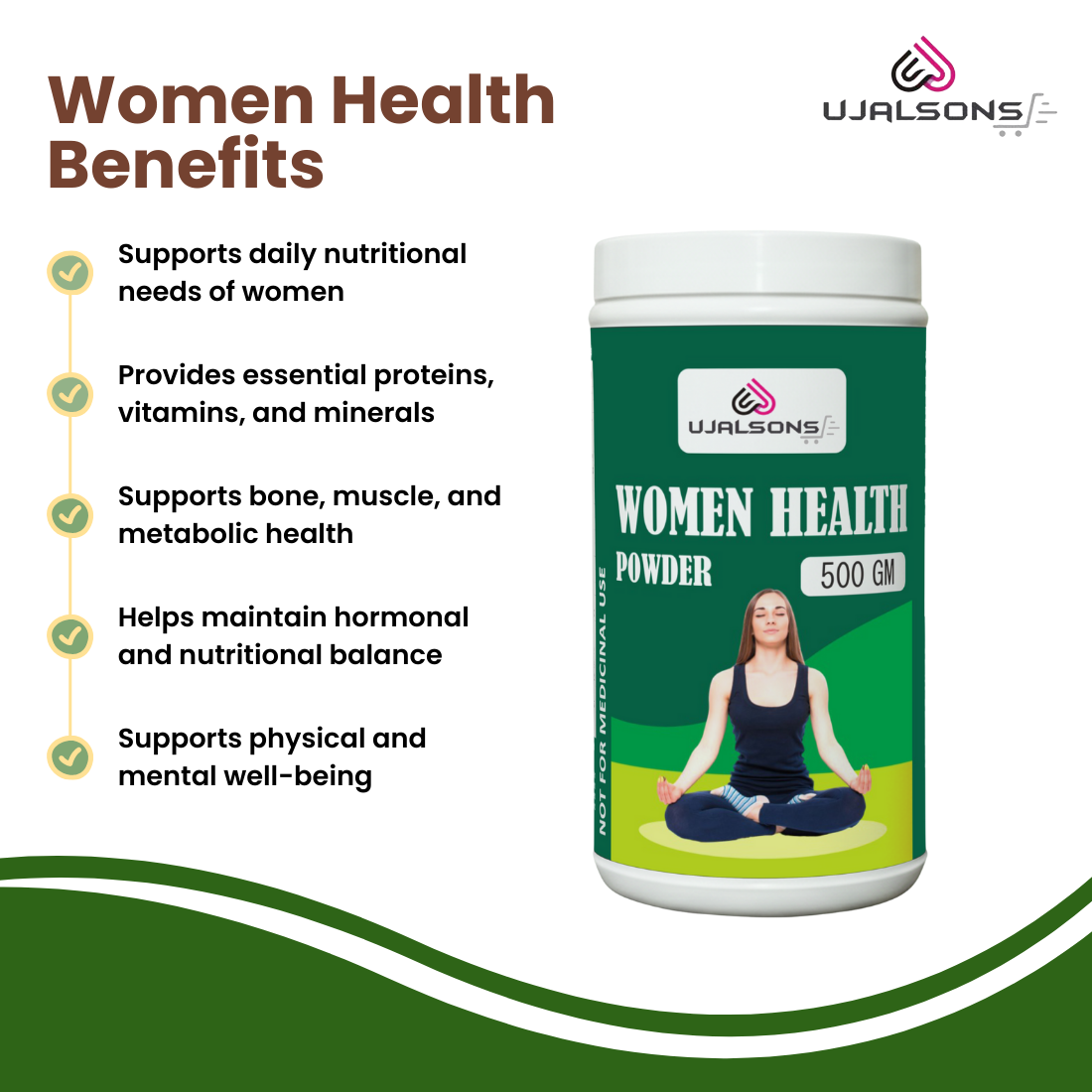 Women Health Powder 500g | Protein, Vitamins & Minerals Supplement for Women | Supports Daily Nutrition, Bone & Muscle Health | Easy to Consume